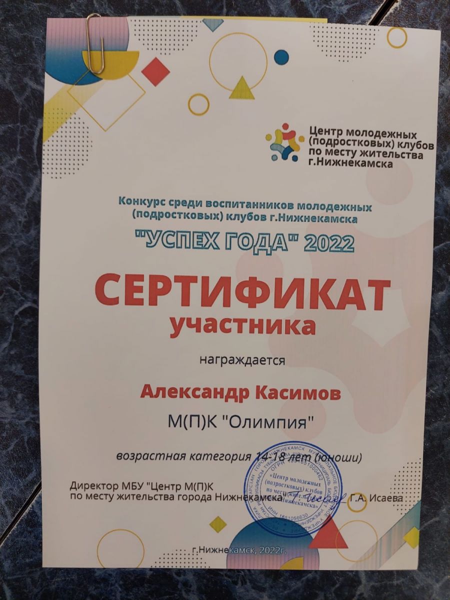 Учащиеся нашей школы Касимов Александр и Муталлапова Разиля приняли участие в конкурсе портфолио среди воспитанников дворовых клубов г. Нижнекамск, за что были награждены сертификатами и памятными подарками.