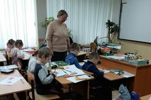 С 1 февраля начались занятия с будущими первоклассниками. Дошкольники с большим интересом изучают жизнь школьников.