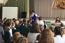В преддверии весенних каникул состоялись линейки с приглашением сотрудника ГИБДД - Ильсияр Нурисламовной Сафоновой 22.03.2019