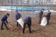 20 апреля сотрудники школы совместно с родителями все вместе вышли на уборку пришкольной территории.