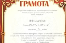 Поздравляем нашего ученика 5а класса Арсланова Айдара с дипломом 3 степени в номинации "Дорогами войны" в 7 Республиканской конференции исследовательских краеведческих работ " Жить, помня о корнях своих". Руководитель Аляшева Р.К.