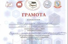 17 февраля учащиеся нашей школы приняли участие в XV республиканской открытой юношеской научно-исследовательской конференции имени С.С.Молодцова. Исследовательские работы ученицы 10 класса Бургантдиновой Анастасии была удостоены первого места, а учащиеся Федорова Валерия (10 класс) и Шайдуллин Дмитрий (9а класс) получили второе место. А 18 февраля Храмова Анастасия (10 класс) участвовала в III Всероссийской научной конференции учащихся в г. Набережные Челны. Её работа была высоко оценена членами жюри и удостоена диплома I степени. Молодцы, так держать! 21.02.2017