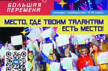 "Большая перемена" - новый развивающий проект для школьников, который поможет раскрыть свои способности и понять, что он способен на большее. "Большая перемена"- сообщество для тех, кто готов меняться и менять мир. Зарегистрируйся! Здесь проходят крутые конкурсы, челенджи, неважно в каком классе ты учишься и сколько тебе лет. Участуй, побеждай!