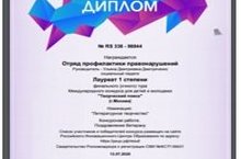 Отряд профилактики правонарушений под руководством социального педагога Дмитриченко Ульяны Дмитриевны, стал лауреатом 1 степени в Международном конкурсе для детей и молодежи "Творческий поиск", г. Москва