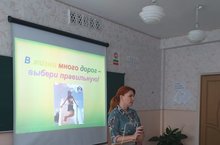 А для обучающихся 10-11 классов была организована встреча с психологом ГАУЗ ДГБ с ПЦ ОМСП «Молодёжная клиника» Куртминой А.В. по теме «Твой выбор».