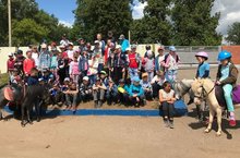 Сегодня 21 июня дети пришкольного лагеря посетили конную школу"Актай",где с удовольствием кормили лошадок и пони,а затем катались на них