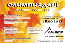 С 21 ноября по 26 ноября в школе проведена осенняя олимпиада ОЛИМПУС. Олимпиады по русскому языку, литературе, математике, истории, обществознанию, биологии, физике, химии, информатике, английскому языку и немецкому языку предназначены для учеников 4, 5, 6, 7, 8, 9 классов. Олимпиада представляет собой тест многократного выбора, состоящий из 30 заданий. К каждому из них в тесте 4 варианта ответа, из которых могут быть правильными один, два, три, четыре или все могут быть неверными. Ученик также имеет возможность воздержаться от ответа.