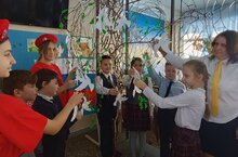 Месячник родного языка завершился познавательной программой "Многоцветие культур", посвященной традициям, культуре и языку татарского, русского, башкирского, чувашского и таджикского народа. Национальные гостиные подготовили обучающиеся 9-х классов. Гостями на мероприятии были дети этих национальностей, они говорили на своих родных языках. А юным зрителям особенно понравились народные игры, ученики начальной школы остались довольны