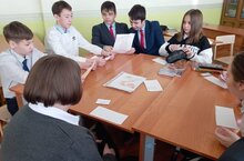 7 нче сыйныф укучылары белән рус теленә багышланган уен-дәрес узды. Укучылар тема буенча башваткычлар чиште, табышмакларга җавап эзләде, шигырьләр сөйләде -