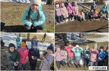 Сегодня ученики 1Б класса отправились на увлекательную экологическую экскурсию. Цель похода — понаблюдать за весенними изменениями в окружающей среде. Во время экскурсии юные натуралисты полюбовались голубым и высоким небом, ярким солнышком. Обратили внимание, что день стал длиннее, весной солнышко светит ярче и согревает землю больше, снег стал рыхлым и влажным. Они внимательно рассматривали на образовавшихся проталинах траву, деревья и кустарники, отмечая характерные признаки пробуждения, обсуждали, какие изменения произошли в неживой природе, прислушивались к звукам природы, любовались красотой пробуждающейся природы. Особый интерес детей привлекло пробуждение первых насекомых. -