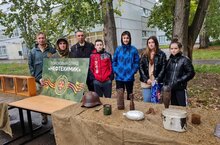 Учащиеся 8 А класса не побоялись дождя, приняли участие в празднике улицы Кайманова , посвящённом дню рождения героя и 80й годовщине подвига .