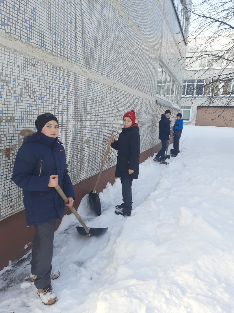 Ответственные ученики 8б класса приняли участие в акции " Твори добро" , убрали снег на территории школы. Молодцы ребята. Классный руководитель Салимова.Г.Р.