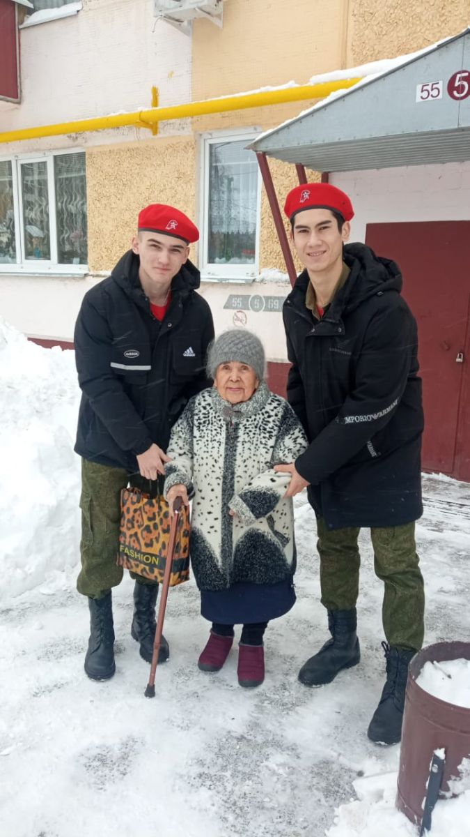 27 января, сегодня, исполняется 80 лет со дня полного снятия блокады Ленинграда. Отряд Юнармии нашей школы имени гвардии майора А.Х. Галиахметова поздравили детей блокадного Ленинграда, проживающих в нашем городе, Сахабутдинова Рукию Гатиятулловну и Хасанова Виля Хатыповича.