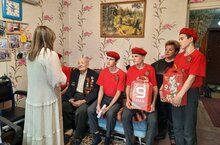 Мәктәпнең Яшь ярмиячеләр отряды җирле үзидарә советы рәисе һәм муниципаль район администрациясе вәкилләре белән берлектә Бөек Ватан сугышы ветераны Николаев Аркадий Спиридоновичны якынлашып килүче Бөек Җиңү көне белән котладылар.