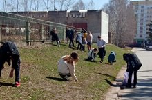 Весна шагает по планете. "ЭКОВЕСНА-2022" набирает обороты. Учащиеся 8А класса приводят в порядок территорию школы.