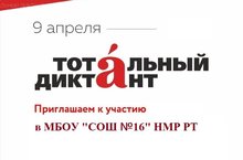 МБОУ "СОШ №16" НМР РТ традиционно выступит одной из площадок в городе. Диктант пройдет в очной форме по предварительной записи.
