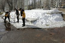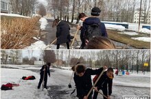 Учащиеся 8А класса принимают активное участие в "Экологическом двухмесячнике". Сегодня, ребята решили ускорить приход весны... Чтобы снег быстрее растаял, его равномерно распределили, разбив и раскидав слежавшийся снег.