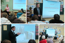 3,4 февраля в нашей школе прошла встреча родителей 1-11 классов с начальником управления образования Фаретдиновым А.Р. и заместителеи начальника управления Щербаковой О.А. Айдар Рафисович ответил на вопросы, которые интересует родителей: школьная карта, питание в школьной столовой, итоговая аттестация 9-х, 11-х классов.