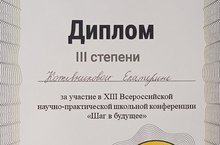 Призеры Всероссийской научно - практической конференции "Шаг в будущее 16.04.2022