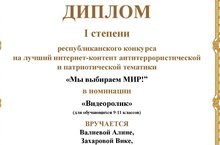 Победители республиканского конкурса на лучший интернет- контент антитеррористической и патриотической тематики « Мы выбираем МИР!» 19.11.2021