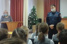 Ермаков В.С.,, майор полиции, напомнил учащимся о правилах безопасного поведения на дорогах в зимний период. 26.12.2020