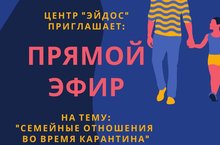 Центр «Эйдос» приглашает: 20 апреля 2020 года в 12.00 ч на нашем официальном аккаунте в Инстаграмм пройдёт ПРЯМОЙ ЭФИР на тему: "Семейные отношение во время карантина"