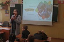 Перед учащимися 1Б класса выступила Хасанова Марьям Хасановна, Почётный член президиума Совета ветеранов системы образования.