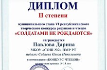 VI Республиканского творческого конкурса рисунков и чтецов «Солдатами не рождаются». Руководитель- Сабаева Ольга Николаевна. -