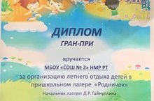 Выражаем огромную благодарность начальнику летнего оздоровительного лагеря Диляре Рустамовне и всему педагогическому коллективу, который трудился в "Родничке"!Гран