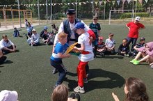 После этого дети рисовали рисунки на асфальте ко дню России. Так же ребята смогли посетить наш школьный музей.