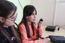 За радиостанцией учащиеся школы 2: Айгуль Сабирова и Аделина Тюкина. Есть связь с специальными радиостанциями Мемориала Победы 78, городов Смоленска, Белгорода, Ельца... . -
