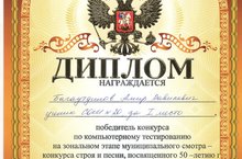 Поздравляем Багаутдинова Амира, ученика 9 А класса победителя конкурса по компьютерному тестированию на зональном этапе муниципального смотра-конкурса строя и песни, посвященного 50-летию г. Нижнекамск и Дню защитников Отечества.