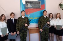 Торжественный митинг памяти выпускника школы Алексея Лугового, погибшего при выполнении боевого задания на Северном Кавказе. Награжден ордером Мужества (посмертно).