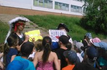 В оздоровительном лагере « Весёлые ребята» прошёл День кладоискателей –игра «КВЕСТ». Подготовка к мероприятию началась заранее: изготовление бус из макаронных изделий, бумажных голубей, огородных пугал, костюмов для отрядов. Лагерь превратился в Обитаемый остров, где проживают племена «Пираты 21 века», «Робинзоны», «Чёрные пантеры». Островитяне получили письмо от известного героя – Робинзона, который попросил их найти клады, зарытые им в нескольких таинственных местах. Он дал подсказки – указатели. И вот «Путешествие по следам Робинзона» началось. Оказалось, что на острове живут ещё «Люди - дикари», которые похитили прекрасных вождей – воспитателей. Каждое племя должно было выполнить ряд заданий, чтобы освободить вождей: отгадать загадки, расшифровать послание, станцевать вместе с дикарями и научить их добрым словам. После освобождения вожатых, племена дружно преодолели полосу препятствий, искали письма с дальнейшими инструкциями у «Крылатых письмоносцев» (бумажных голубей), у «Спящих стоя» (огородных пугал). И вот, наконец, долгожданные клады найдены. Данная игра – путешествие предоставила детям полную свободу действий, огромные просторы для фантазии и, главное, кучу радости и веселья.