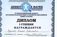 27 февраля 2015 года прошел очный этап VI Республиканского конкурса исследовательских работ и проектов школьников "Дебют в науке". Ученик 2 А класса Идиятов Ильнар представил исследовательскую работу, посвященную 70-летию Великой Победы. По итогам конкурса Идиятов Ильнар занял I место в номинации "Дорогами войны" и был награжден Дипломом I степени. Поздравляем!