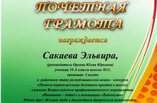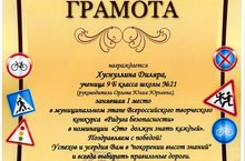 В районном этапе республиканской акции-конкурса "Помоги первокласснику безопасно прийти в школу" в рамках Всероссийского профилактического мероприятия "Внимание - дети!" учащиеся нашей школы под руководством Орловой Ю.Ю. заняли призовые места: Сакаева Эльвира - I место в номинации "Видеоклип", Борисова Вероника - III место в номинации "Эссе". Поздравляем!