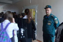 Сегодня, 3 сентября 2014 года в рамках месячника безопасности прошла учебная эвакуация школы в присутствии главного специалиста отделения НД по НМР РТ УНД ГУ МСЧ России по РТ майор внутренней службы Шаехова Ильнура Ильгизаровича.