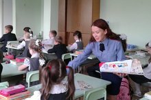 Сегодня в рамках Всероссийской акции "Внимание, дети!" прошли классные часы по знанию ПДД в начальных классах с участием инспектора ГИБДД. Первоклассники смотрели обучающие мультфильмы о ПДД, также им вручили подарки, они повторили правила дорожного движения на пути следования в школу и к дому.