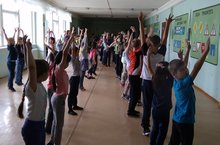 Утро в лагере "Зорька" начинается с зарядки.