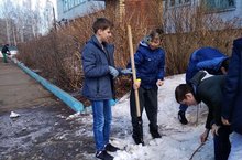 В рамках двухмесячника "Эко-весна-2018" организован субботник 14 апреля. Ребята ДОО "Лидер", ШСС, отрядов юнармии, РДШ и Смс-Лидер с педагогами убрали мусор и раскидали снег