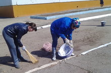 В субботу состоялся предпраздничный субботник, на который вышла вся школа , и дети ,и педагоги. Вся территория была приведена в порядок ,побелены деревья и бордюры.
