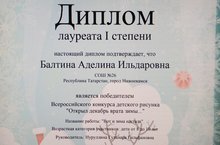 Ученица 2 Б класса Балтина Аделина приняла участие во Всероссийском конкурсе детского рисунка «Открыл декабрь врата зимы...» Всероссийского центра просвещения «Мир педагога»