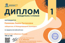 Рахимова Лиана - диплом победителя 1 степени