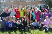 4 Б класс в подарок школе посадил на одной из клумб три рябины. Около одной из них они оставили красивую табличку. Воспитанного человека украшают хорошие дела. Мы надеемся, что эти молодые саженцы приживутся и будут радовать нас долгие годы! -
