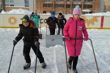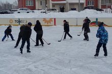 После того, как ученики 4 Б класса почистили снег в хоккейной коробке, начался первый тайм хоккейной игры.
