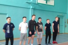 В спортивном зале школы прошла дружеская встреча по волейболу среди 11А класса и выпускниками школы.