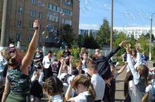 Под окнами начальной школы прошло мероприятие "Мыльные пузыри". Дети веселились, лопали пузыри. Было очень весело как детям, так и взрослым.