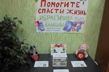 15 ноября 2014 года была произведена передача средств, собранных учащимися нашей школы и их родителями на лечение нашей ученицы 6 Б класса Ибрагимовой Ландыш.