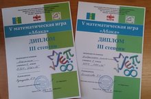 11 ноября 2014 года в лицее № 24 состоялась V математическая игра "Абака". Наши команды "Мыслители" 7 класс (состав - Сарнакова Елизавета, Шуклин Алексей, Гарифуллина Алина, Назмеева Розалина, руководитель: Кунгурова Г.Р.) и "Алгебраические стоматологи" 5 класс (состав - Хайрутдинов Рустем, Шайхуллин Амир, Хакимзянова Миляуша, Володина Оля, руководитель: Багманова Э.Р.) были награждены дипломами III степени. Молодцы!