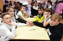 Учащиеся 6 В класса на муниципальном Чемпионате интеллектуальной игры "Что? Где? Когда?" среди школьников школ города. Желаем удачи!